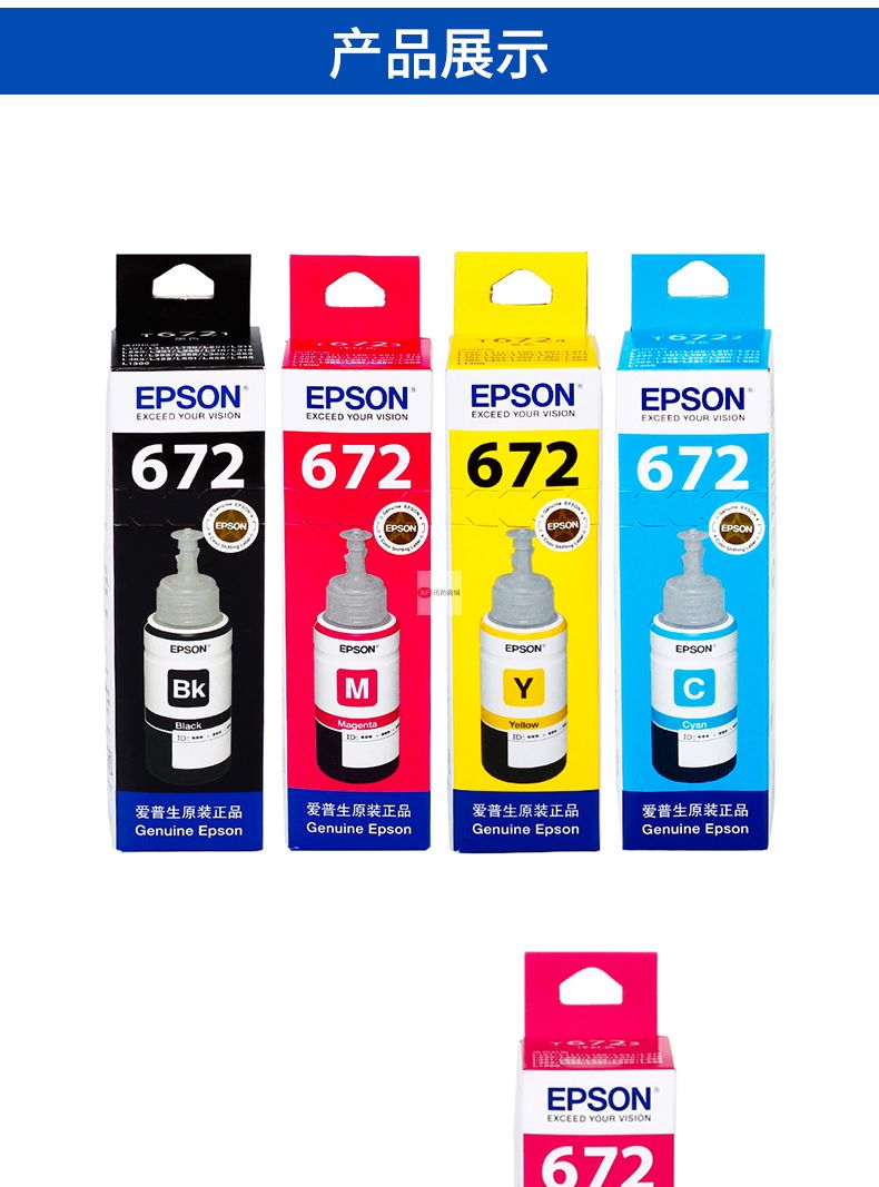 自營愛普生T6721原裝墨水L380 L385 L485 L551 L1300 L360 L220打印機 T672愛普生原裝黃色墨水