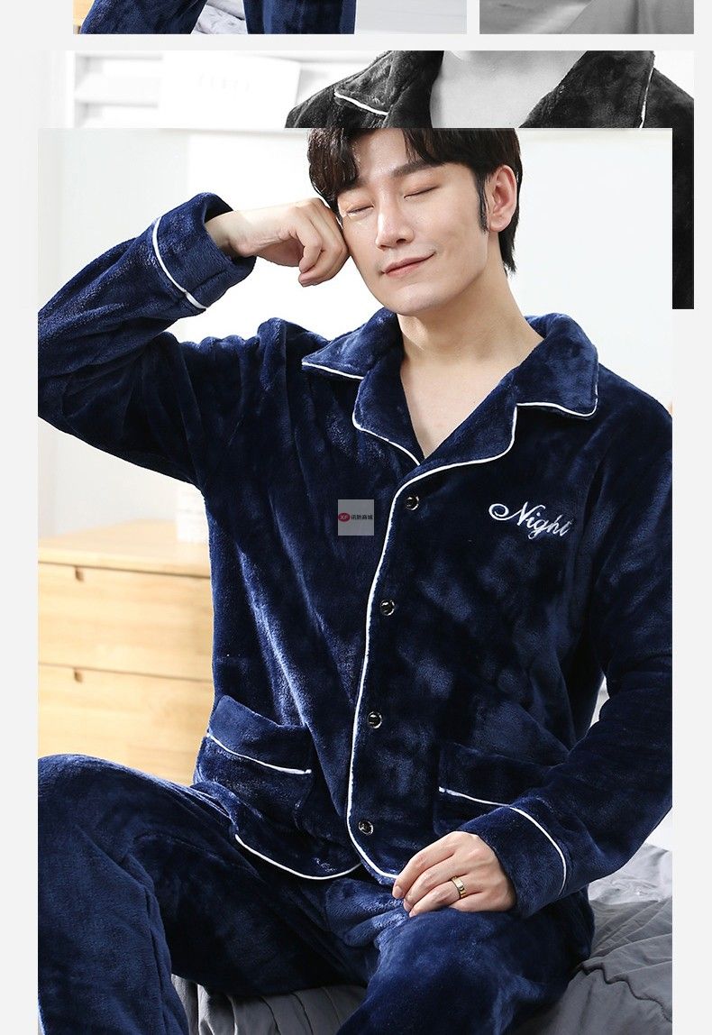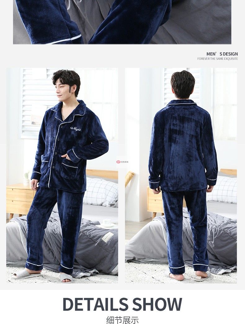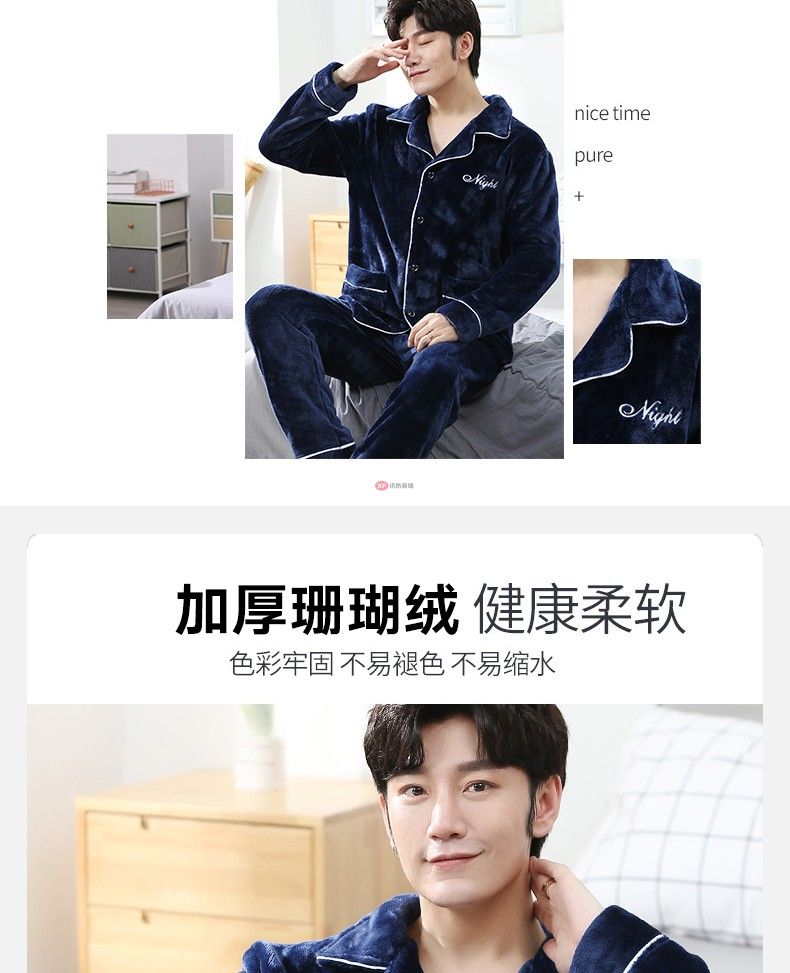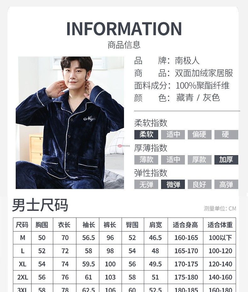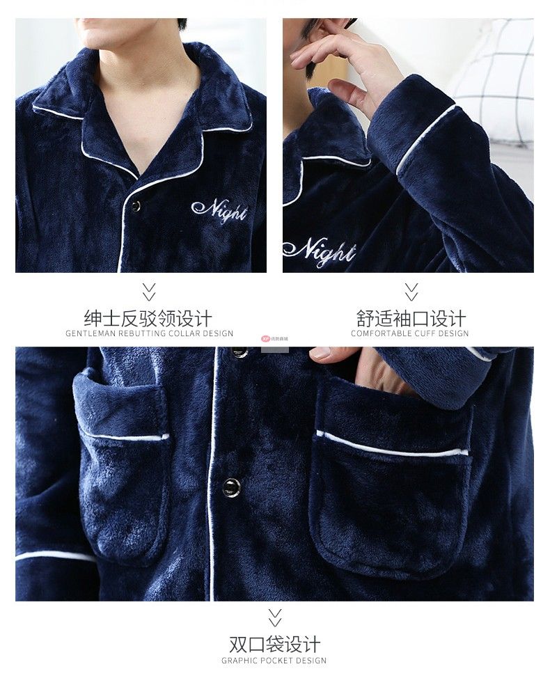 商品名稱(chēng):南極人睡衣男秋冬家居服套裝可外穿法蘭絨保暖加厚加絨珊瑚絨睡衣套裝 藏青 XXL