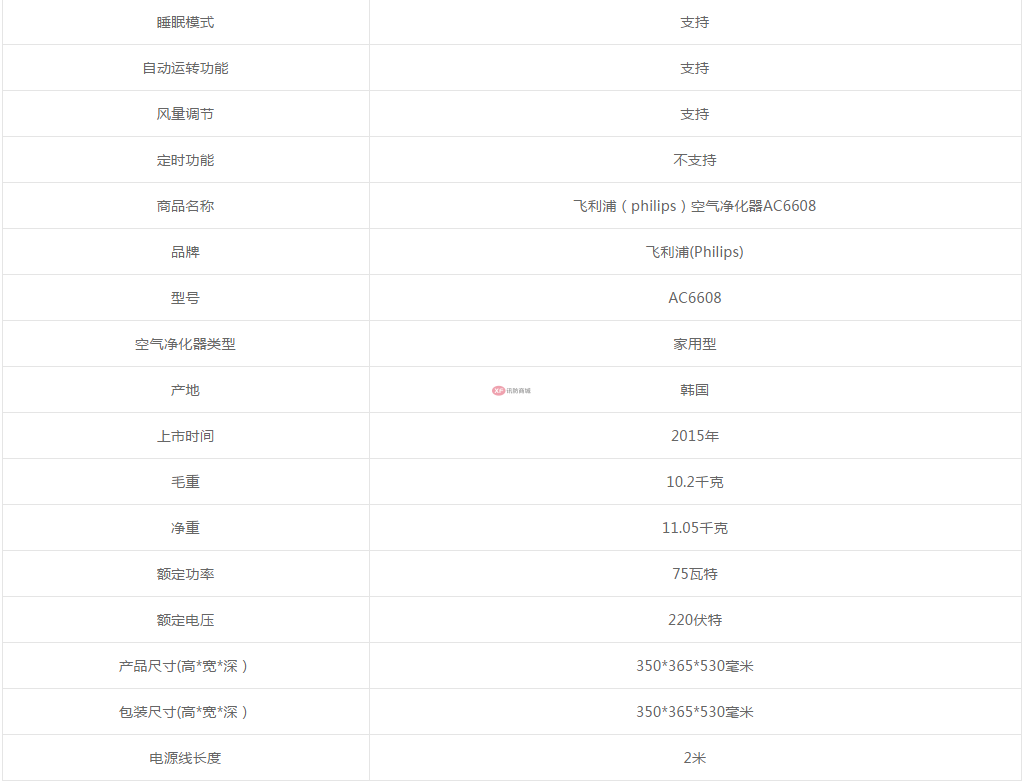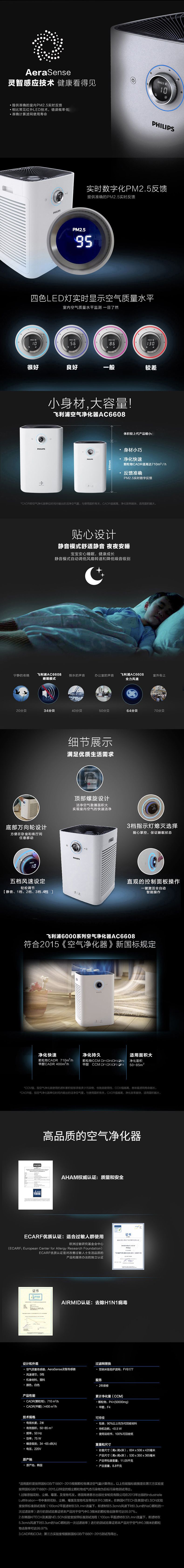 商品名稱:飛利浦(PHILIPS) AC6608 空氣凈化器 白色 10.2千克