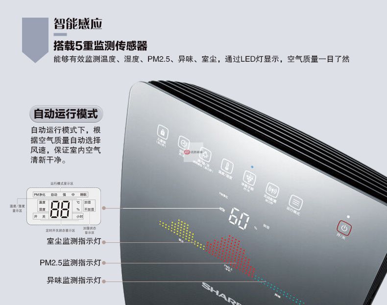 商品名稱:夏普KC-CG60-M 空氣凈化器 除甲醛PM2.5霧霾異味花粉加濕智能互聯(lián)辦公室除煙塵
