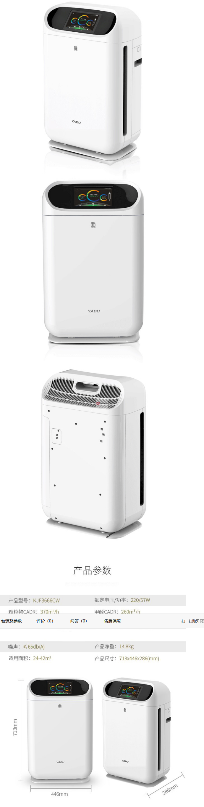 商品名稱:亞都(YADU) 空氣凈化器 KJF3666CW 亞都凈化器 60㎡以上 除煙塵除PM2.5 CADR值480