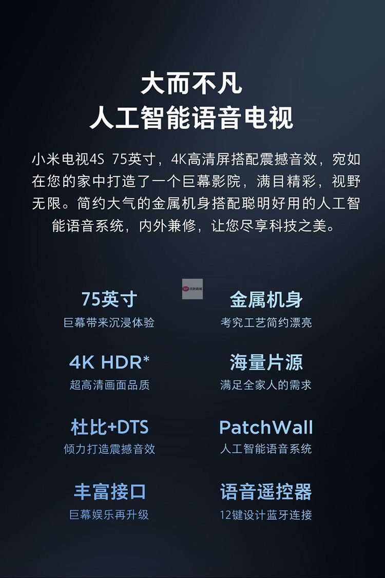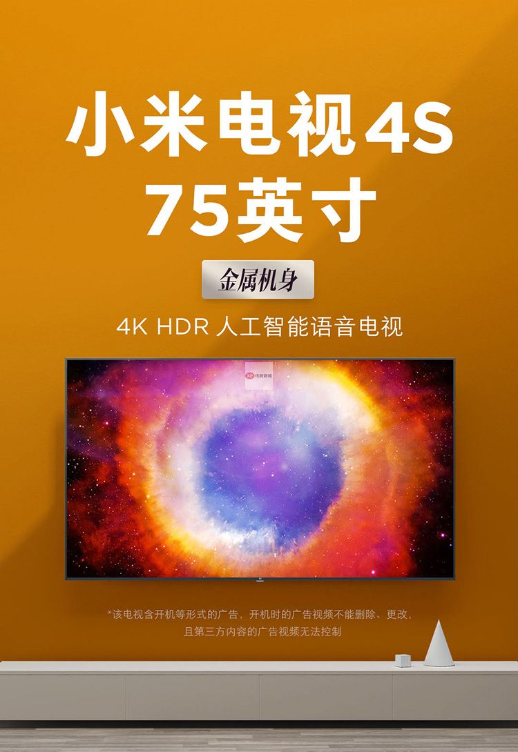 商品名稱:小米電視4S 75英寸超大屏 4K超高清藍牙語音遙控 2GB+8GB L75M5-4S 人工智能語音網(wǎng)絡(luò)液晶平板教育電視 含掛架及普通安裝