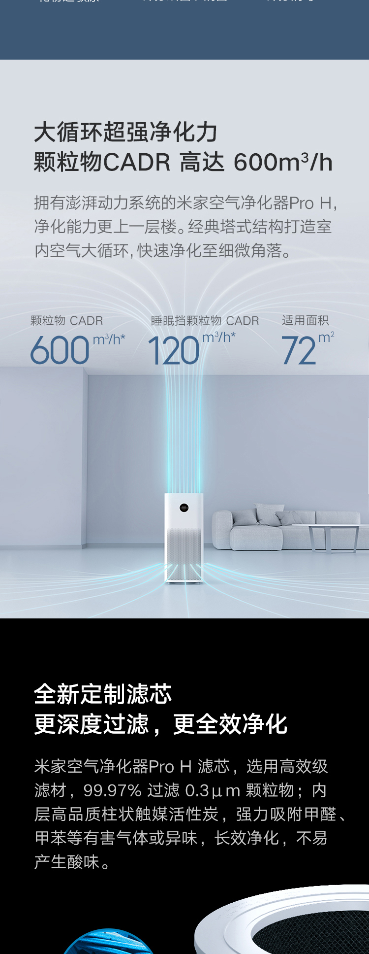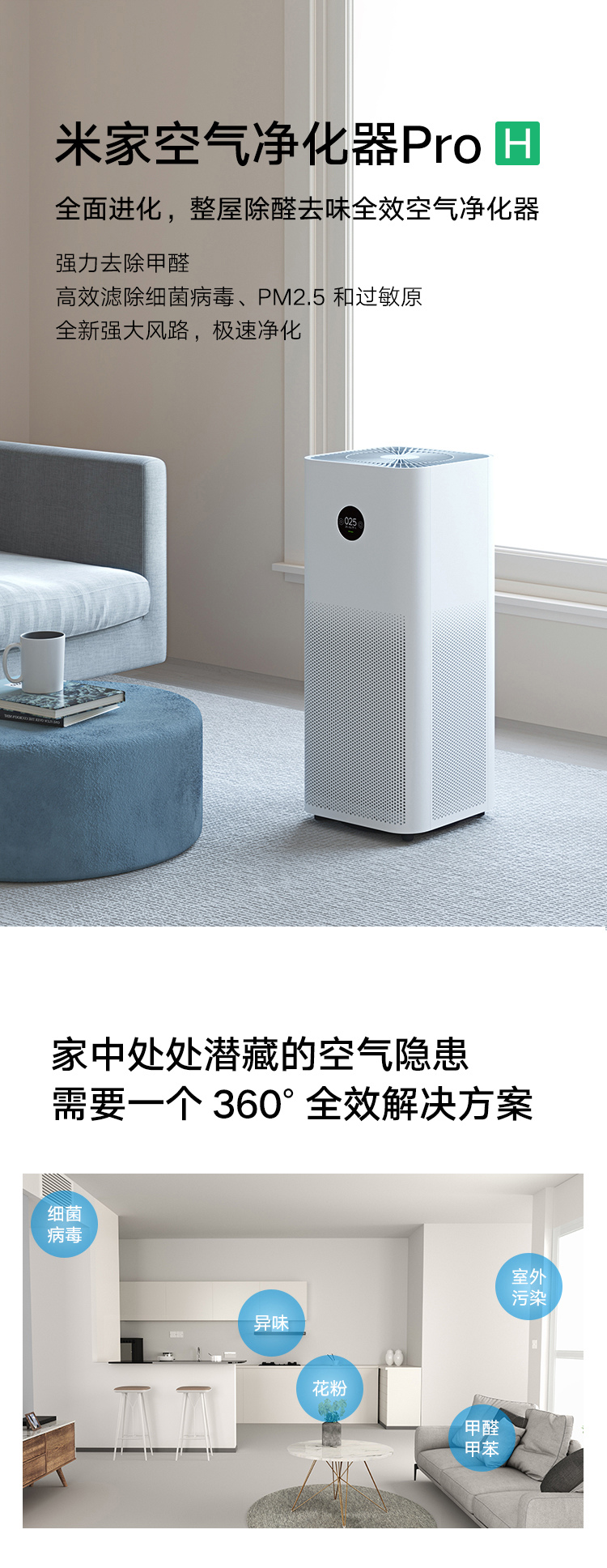 商品名稱:米家 小米空氣凈化器Pro H 家用除甲醛病毒異味二手煙 靜音設(shè)計 600m3/hAC-M7-SC