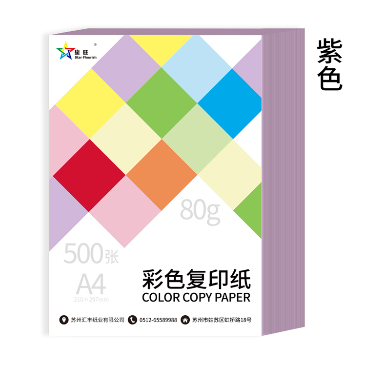 自營星旺 彩色復印紙 80克 A4 500張/包 紫色
