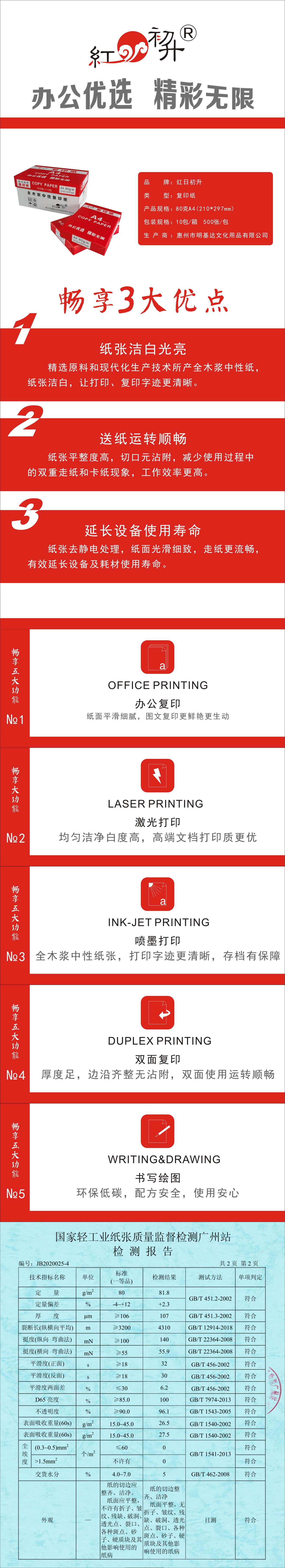 商品名稱:紅日初升 A4 80g 復(fù)印紙 500張/包 10包/箱