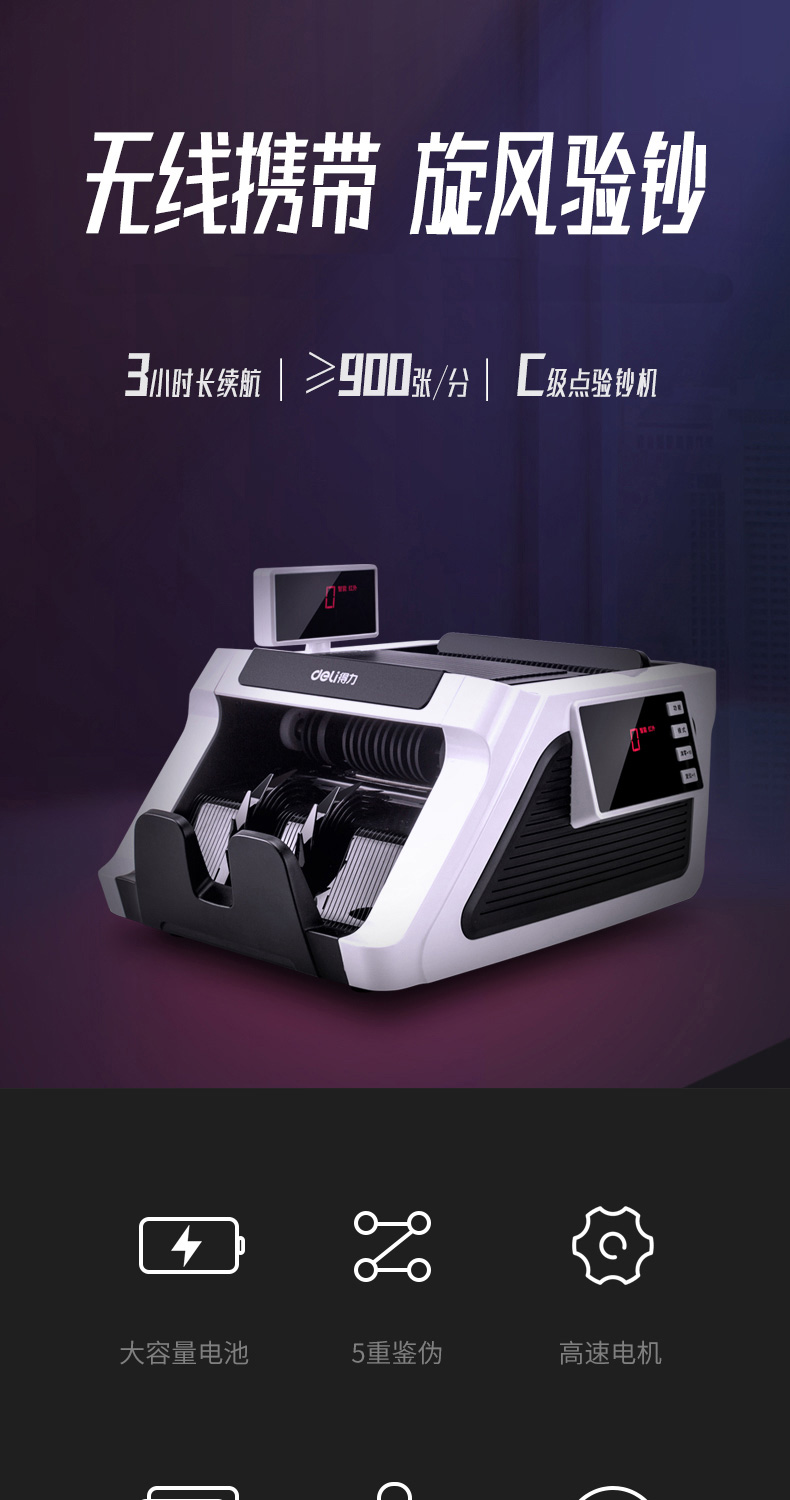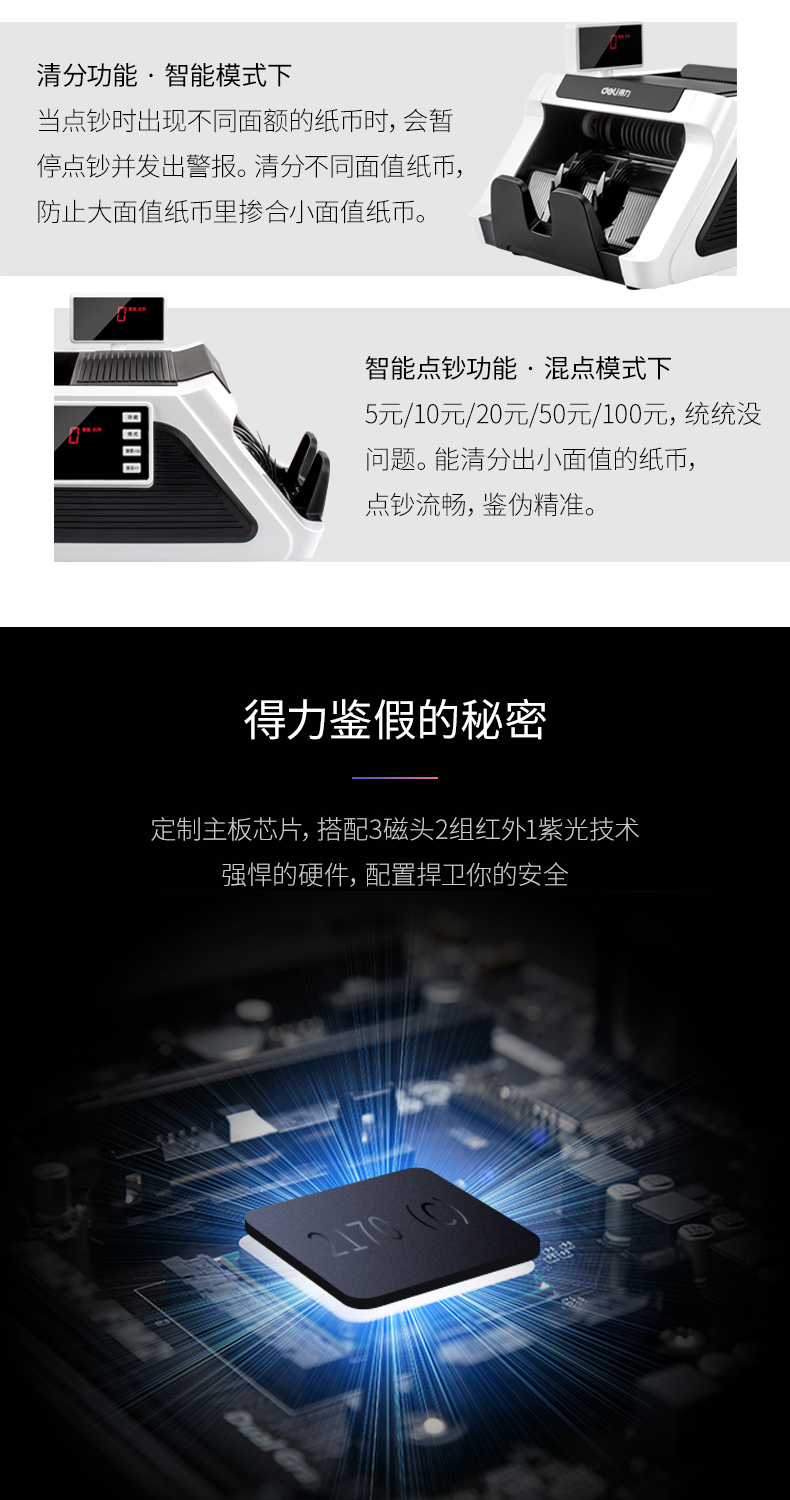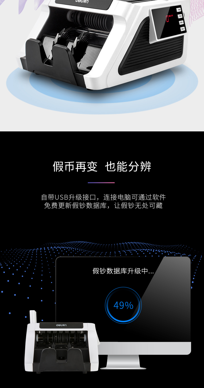 商品名稱:得力(deli) 點鈔機 驗鈔機 銀行專用 雙屏/單屏 33316S銀行專用B類(三屏)
