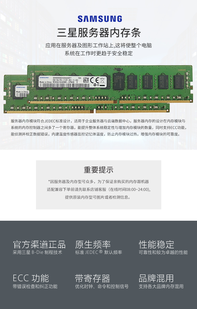 自營三星/SAMSUNG便攜式服務(wù)器移動工作站筆記本糾錯校驗(yàn)內(nèi)存條支持NAS ECC SODIMM 16G DDR4 2400 ECC SODIMM