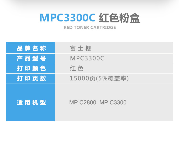商品名稱:富士櫻(FUSICA)MPC3300C紅色粉盒 適用理光MP C2800 C3330