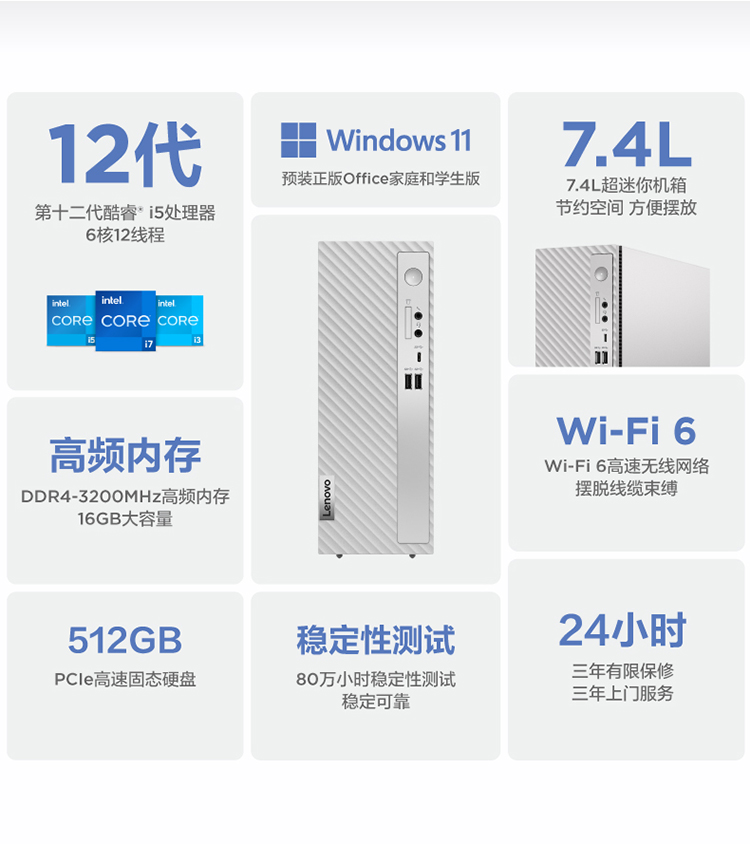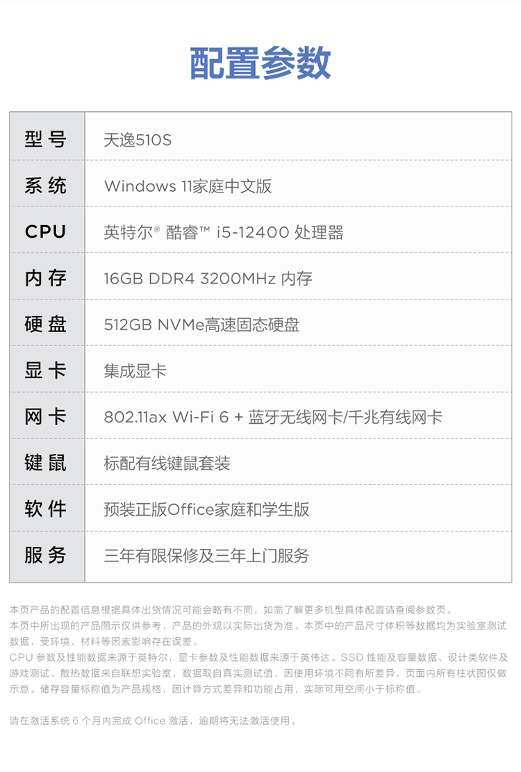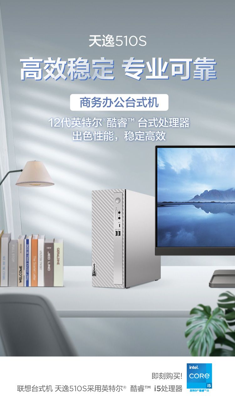 自營聯想(Lenovo)天逸510S英特爾酷睿i5個人商務臺式機電腦整機(12代i5-12400 16G 512G SSD win11)23英寸