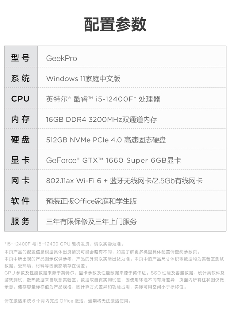 商品名稱:聯想(Lenovo)GeekPro 2022設計師游戲臺式電腦主機(12代i5-12400F GTX1660super 16G 512G SSD )