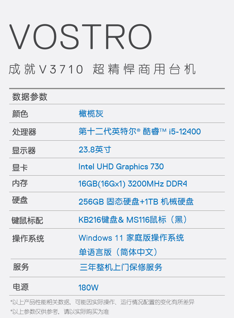 自營(yíng)戴爾dell成就3710臺(tái)式機(jī)電腦主機(jī) 商用辦公電腦整機(jī) (12代i5-12400 16G 256GSSD+1TB WiFi Win11)23.8英寸