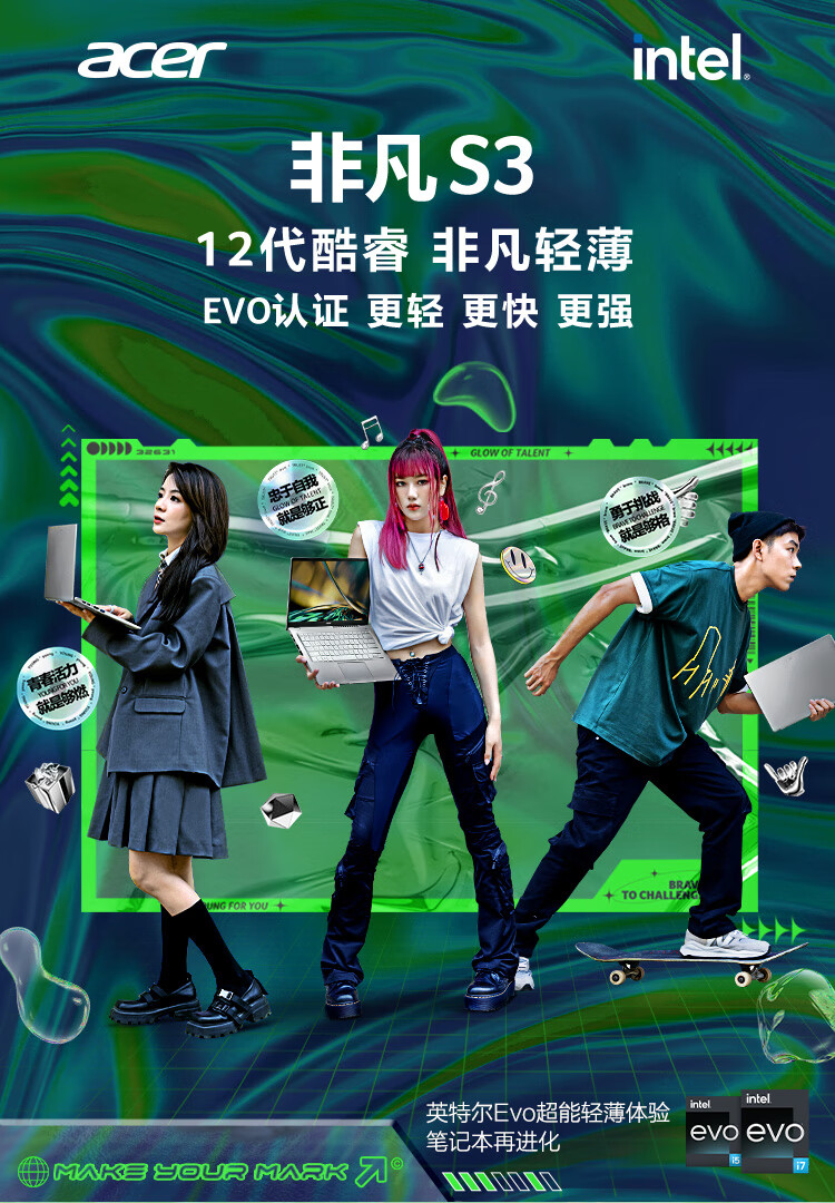 自營宏碁(Acer)非凡S3 全新12核Evo超能輕薄本 14英寸2.5K高色域 辦公學(xué)生筆記本電腦(12代i5-1240P 16G 512G)銀