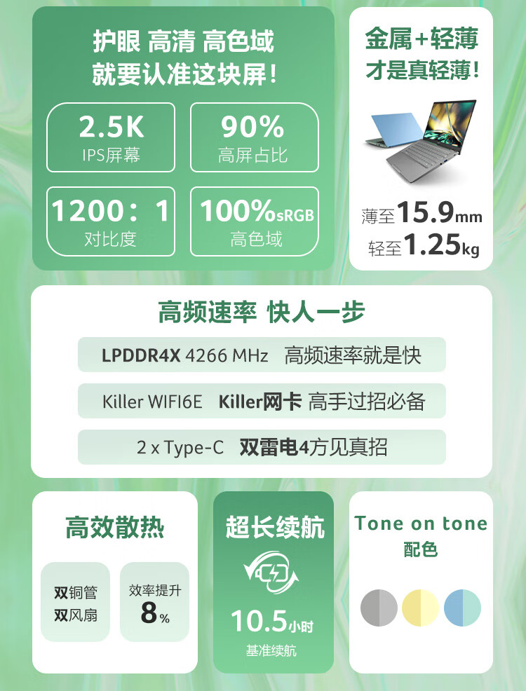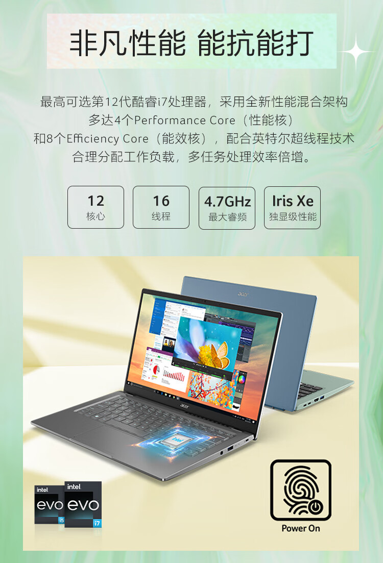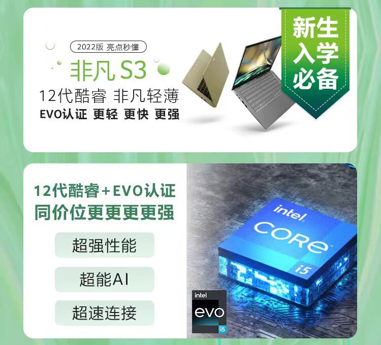 商品名稱:宏碁(Acer)非凡S3 全新12核Evo超能輕薄本 14英寸2.5K高色域 辦公學(xué)生筆記本電腦(12代i5-1240P 16G 512G)銀