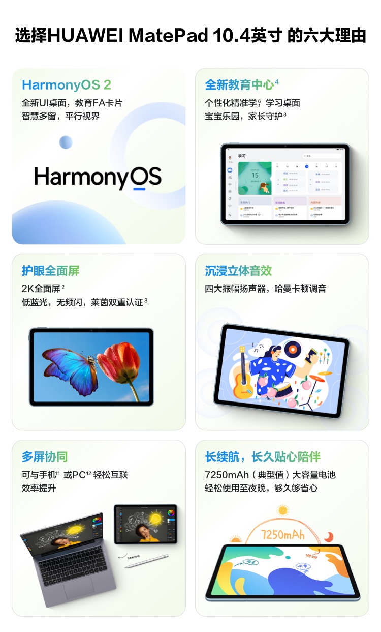 自營華為HUAWEI MatePad 10.4英寸悅動版 影音娛樂辦公學(xué)習(xí) 專屬教育中心 全面屏平板電腦6G+128G WIFI 曜石灰