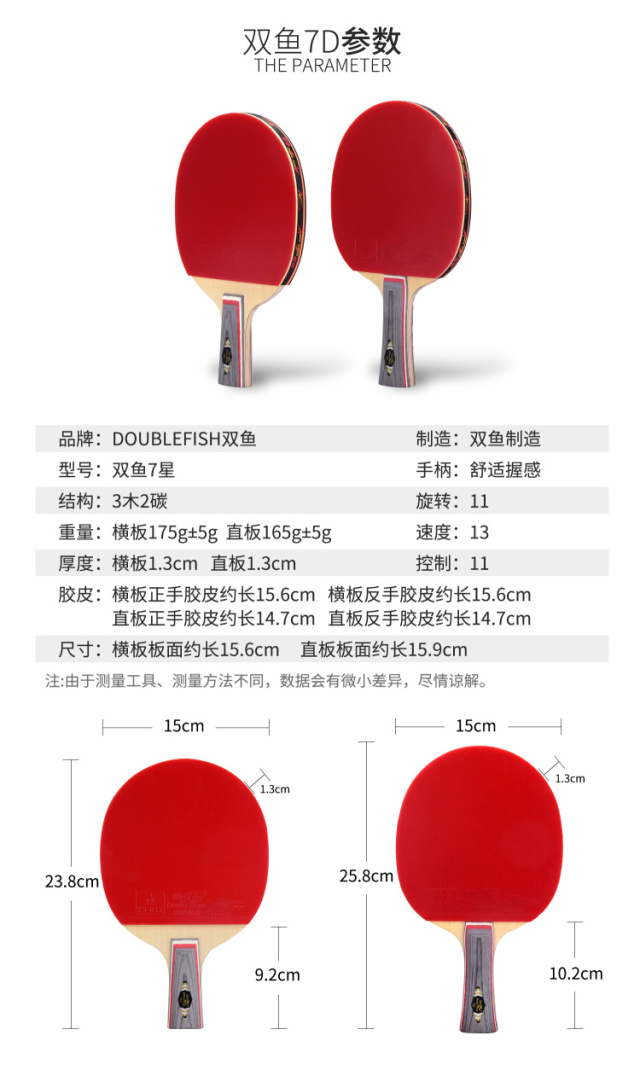商品名稱:雙魚7星碳素乒乓球球拍 橫拍單只長柄 7D-C