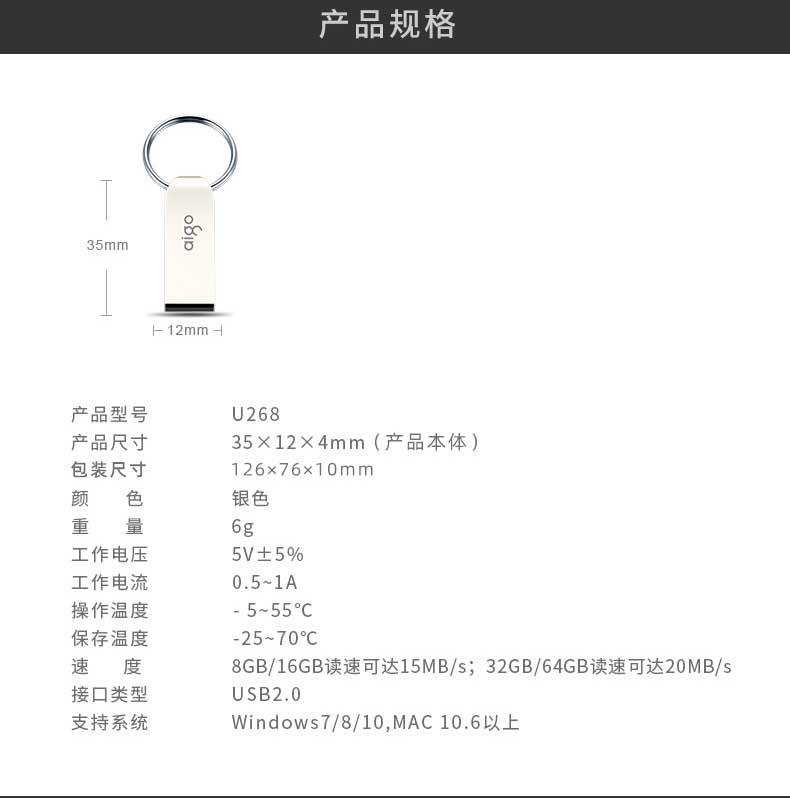 商品名稱:愛(ài)國(guó)者(aigo)32GB USB2.0 U盤 U268迷你款 銀色 金屬U盤