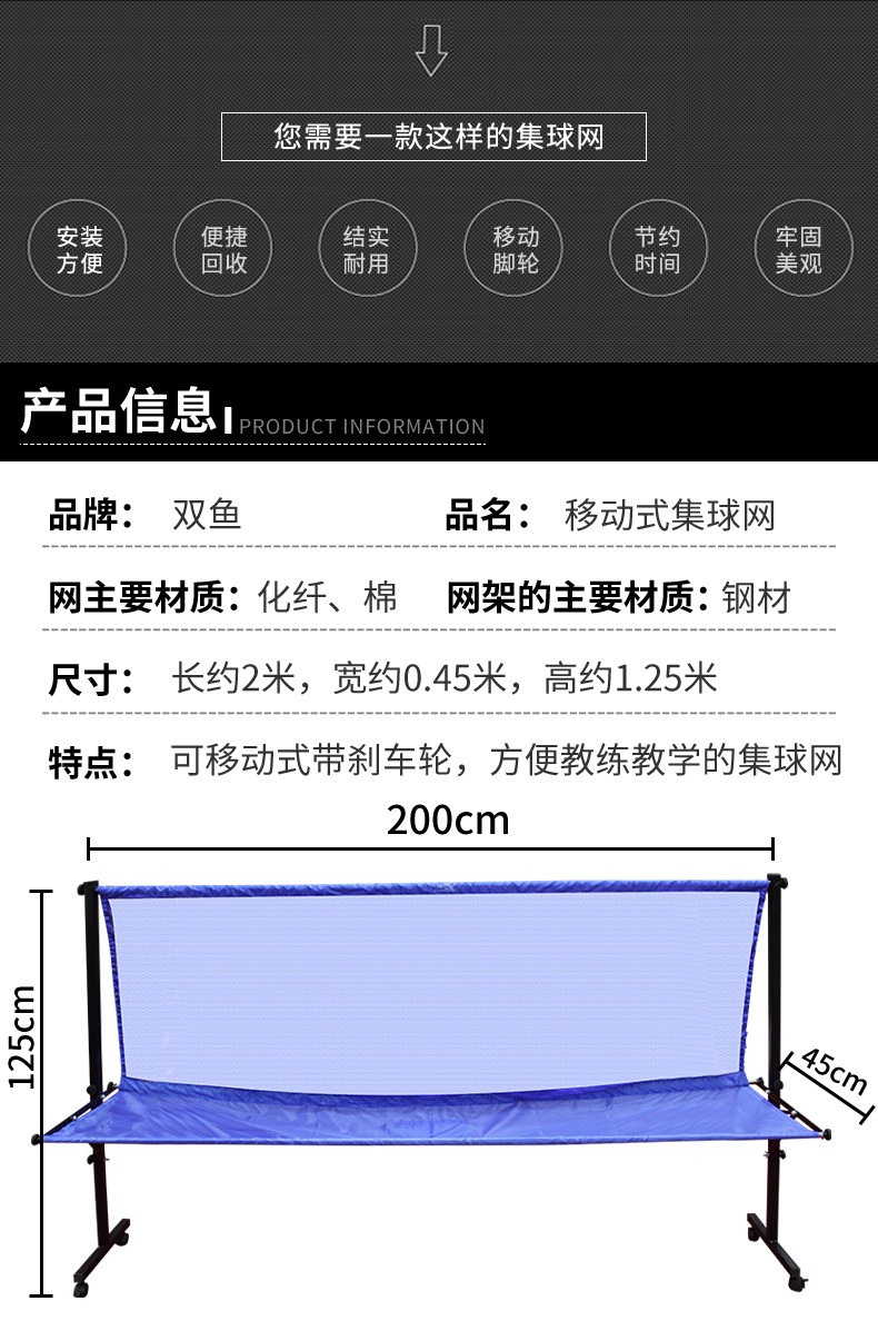 商品名稱:雙魚乒乓球 落地式集球網(wǎng) 移動式集球網(wǎng)