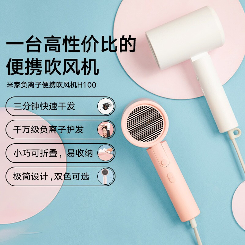 自營小米 H100 電吹風(fēng) 米家 負(fù)離子護(hù)發(fā)可折疊 白色/粉色
