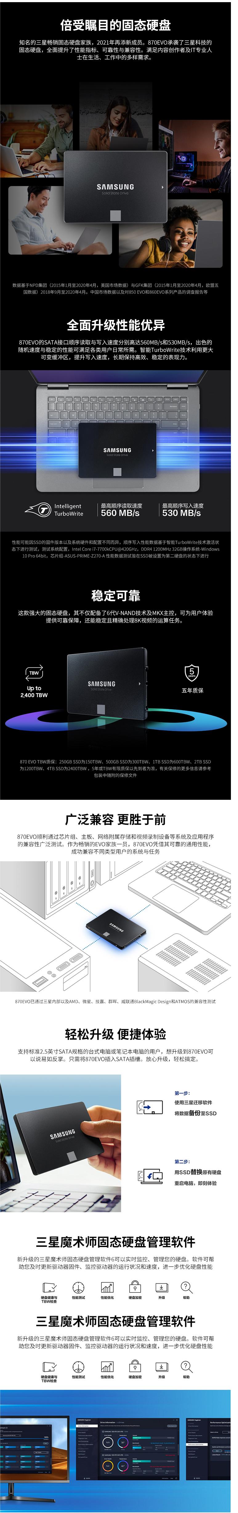 商品名稱:三星(SAMSUNG) 870 EVO(MZ-77E4T0B) 固態(tài)硬盤 4TB SATA3.0接口 讀取速度560MB/s