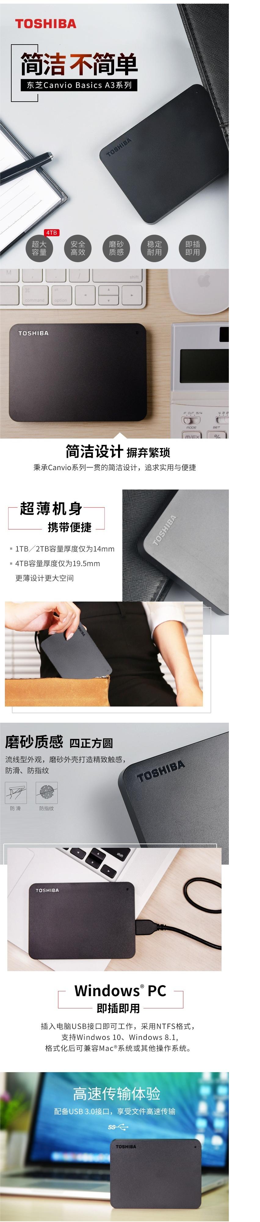 自營東芝(TOSHIBA) 4TB 移動硬盤 新小黑A3 USB3.0 2.5英寸 商務(wù)黑 兼容Mac