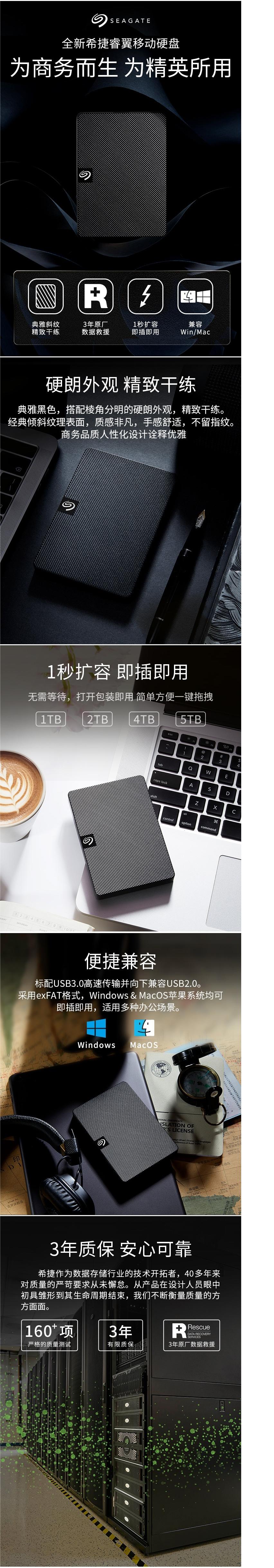 自營希捷(Seagate) 4TB 移動硬盤 USB3.0 2.5英寸 便攜 兼容MAC