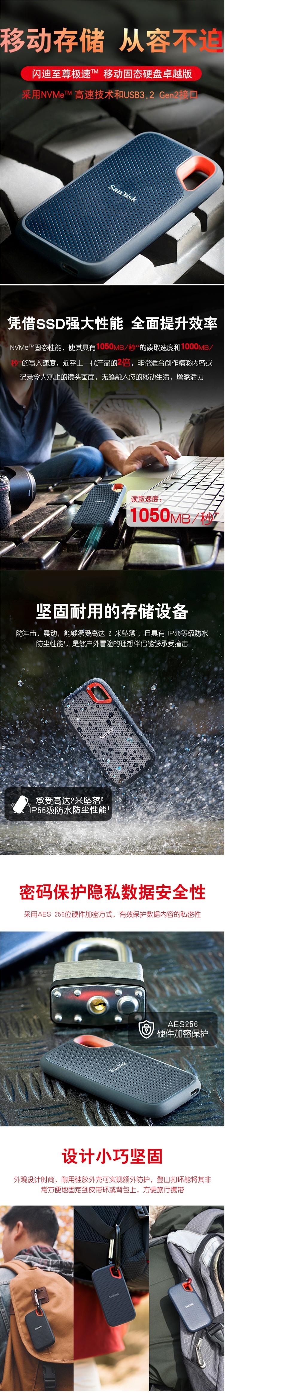 商品名稱:閃迪(SanDisk)2TB Nvme 移動(dòng)硬盤(pán)(PSSD)E61至尊極速卓越版 傳輸速度1050MB/s IP55等級(jí)三防保護(hù)