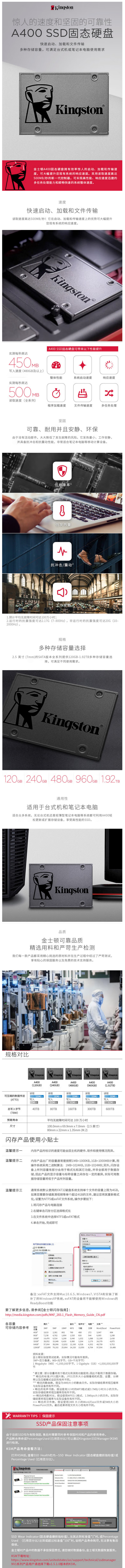 商品名稱:金士頓 960GB SSD固態(tài)硬盤 SATA3.0接口 A400系列