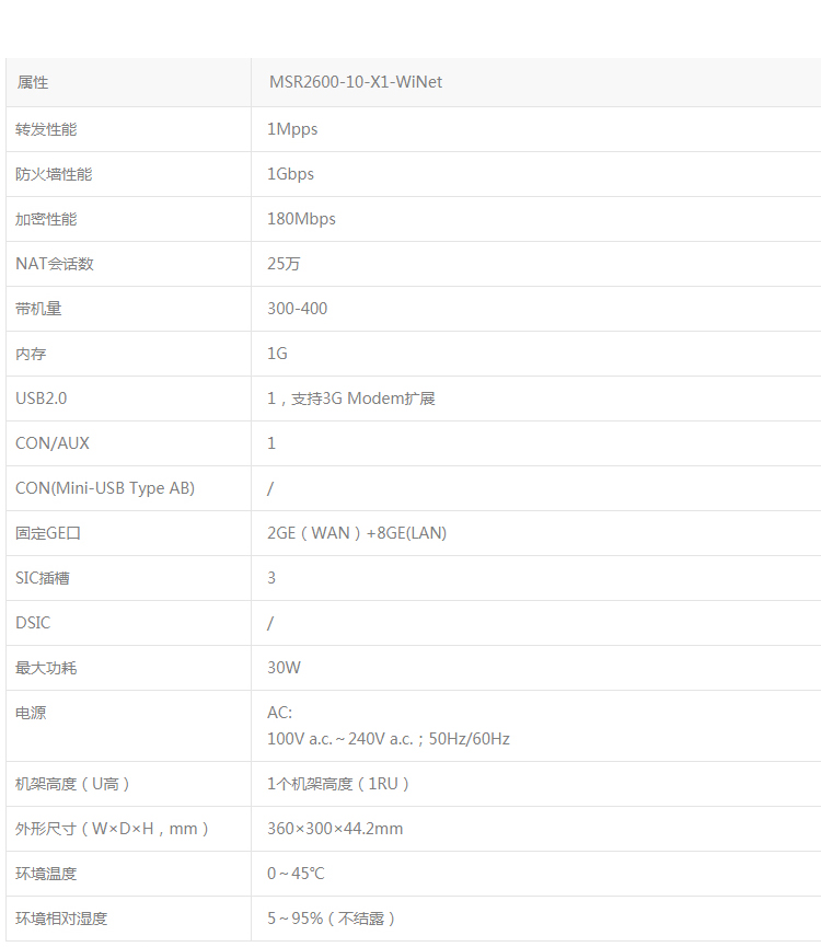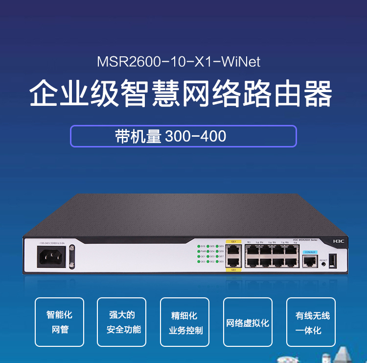 商品名稱:華三(H3C)MSR2600-10-X1-WiNet 多WAN口千兆智能網(wǎng)管企業(yè)級VPN路由器 帶機(jī)量300-400