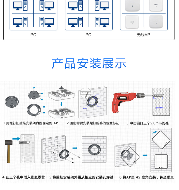 商品名稱:華三(H3C)WAP712C-LI-G-FIT 室內雙頻 企業(yè)wifi無線路由器