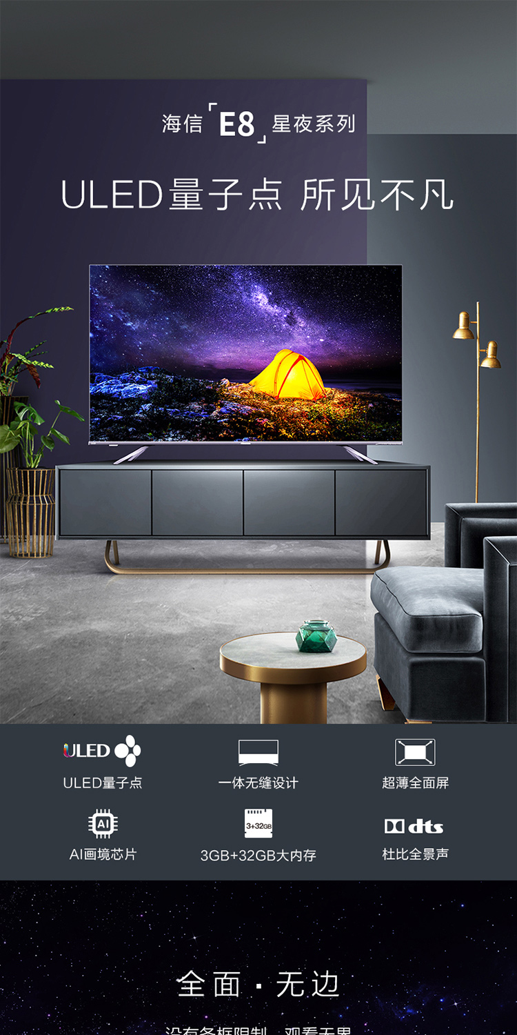 商品名稱:海信(Hisense)HZ55E8A 55英寸 4K ULED超畫質(zhì) 量子點(diǎn) 超薄全面屏 AI人工智能液晶電視機(jī)