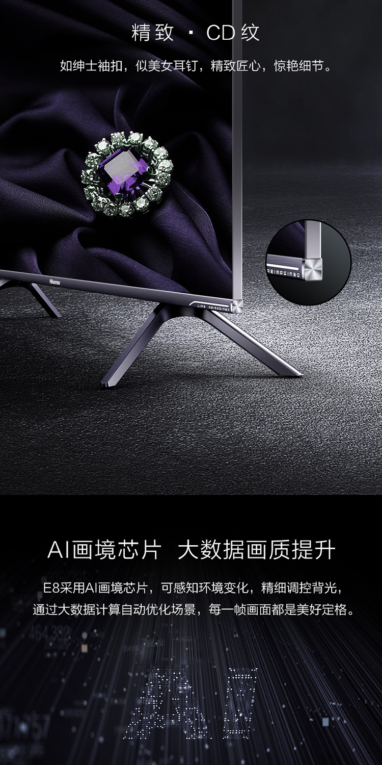 自營海信(Hisense)HZ55E8A 55英寸 4K ULED超畫質(zhì) 量子點(diǎn) 超薄全面屏 AI人工智能液晶電視機(jī)