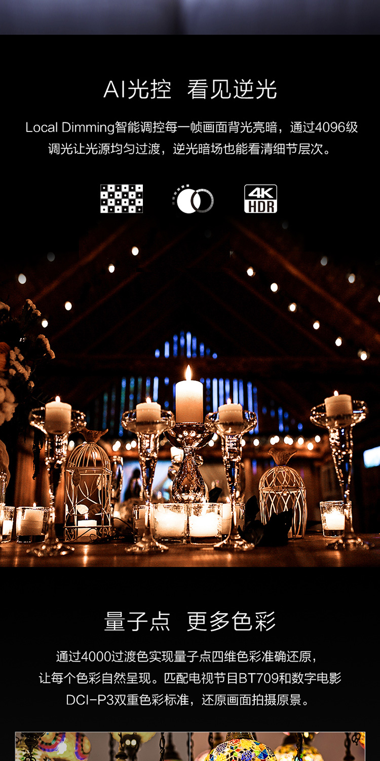 • 電視類型:全面屏,人工智能,超薄,4K超清,量子點(diǎn)