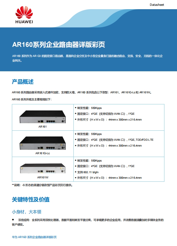 • 商品名稱:華為 AR161G-Lc 千兆路由器 無(wú)線路由器 Wi-Fi6+ 7200Mbps 雙倍穿墻 黑色 華為路由,70 尺寸(寬×深×高)300.0mm×216.4mm×44.0mm