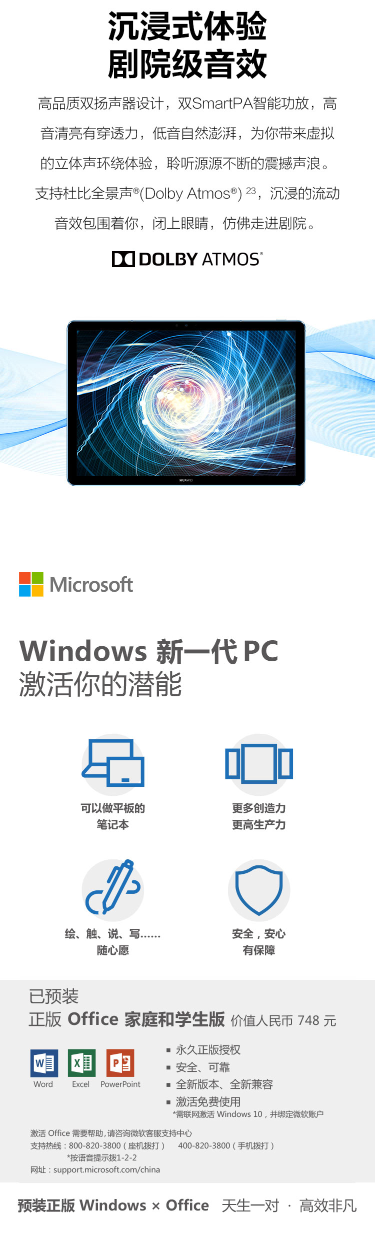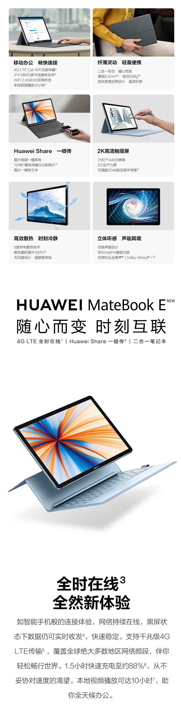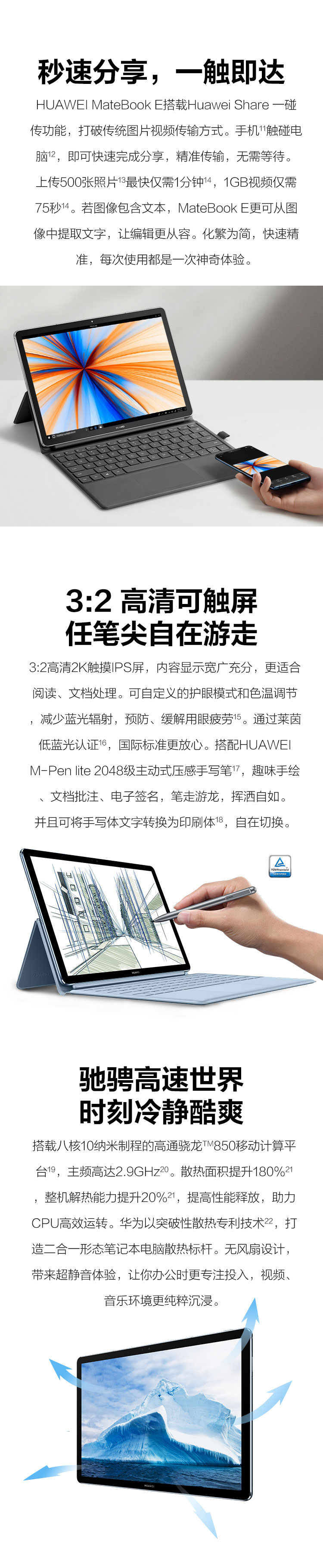 商品名稱:華為(HUAWEI) MateBook E 2019款 12英寸全連接輕薄二合一筆記本電腦( 魅海藍 高通850 8G 512G)