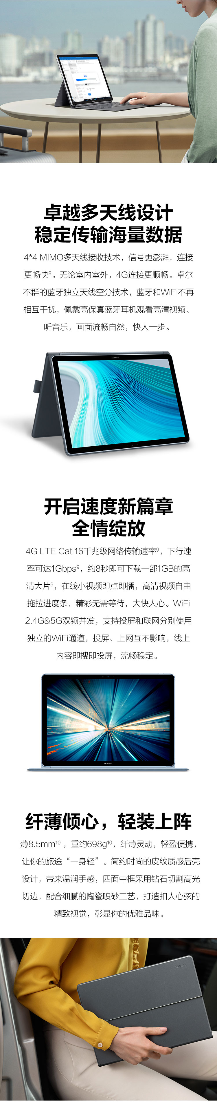 自營華為(HUAWEI) MateBook E 2019款 12英寸全連接輕薄二合一筆記本電腦( 魅海藍 高通850 8G 512G)