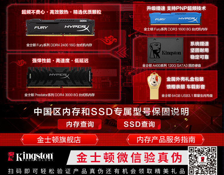 商品名稱:金士頓(Kingston)駭客神條 Fury系列 DDR4 2400 16G 臺式機內(nèi)存