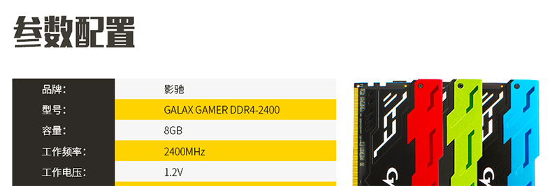 商品名稱:影馳 (Galaxy)GAMER DDR4 8GB 2400 頻率單條臺(tái)式機(jī)四代內(nèi)存條