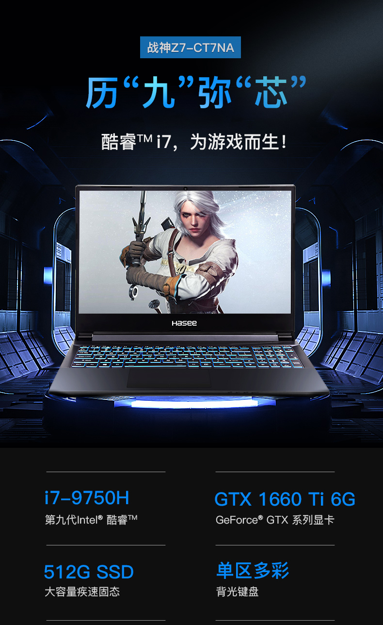 商品名稱(chēng):神舟(HASEE)戰(zhàn)神Z7-CT7NA 英特爾酷睿i7-9750H GTX1660Ti 6G獨(dú)顯15.6英寸窄邊框游戲筆記本電腦(8G 512G SSD)