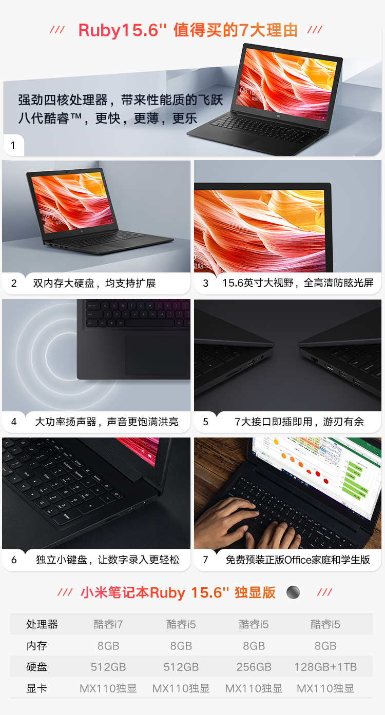 商品名稱:小米 (MI)Ruby 2019款 15.6英寸金屬輕薄筆記本電腦(第八代英特爾酷睿i5-8250U 8G 256G SSD 2G GDDR5獨顯 FHD 全鍵盤 Office Win10) 深空灰