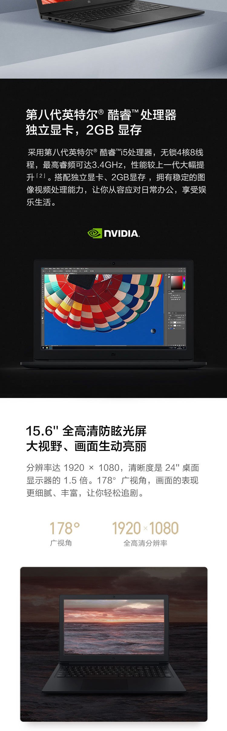 自營小米 (MI)Ruby 2019款 15.6英寸金屬輕薄筆記本電腦(第八代英特爾酷睿i5-8250U 8G 256G SSD 2G GDDR5獨顯 FHD 全鍵盤 Office Win10) 深空灰