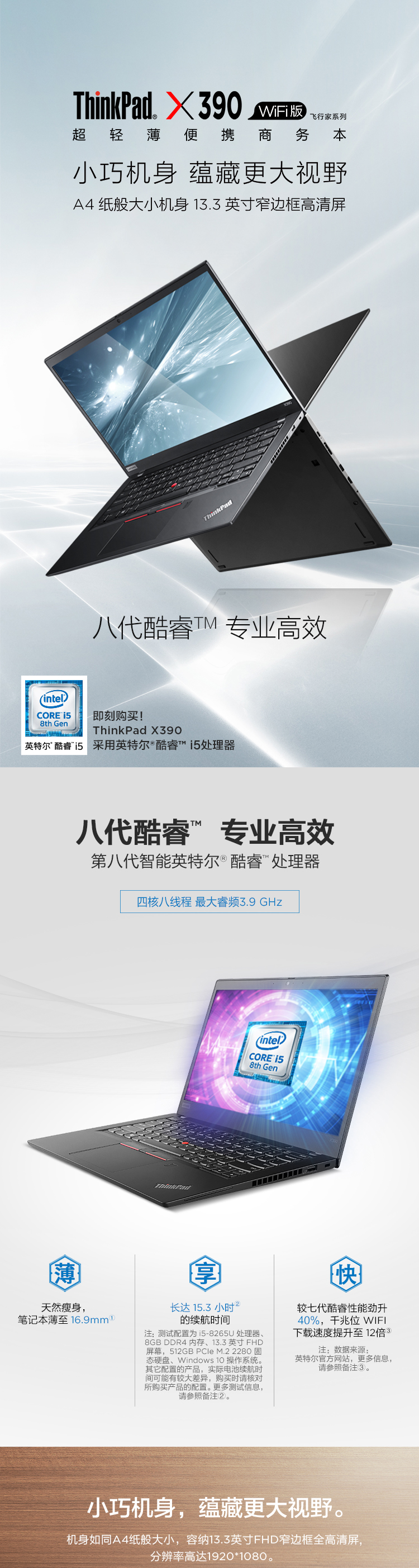 自營聯(lián)想ThinkPad X390(39CD)英特爾酷睿i5 13.3英寸輕薄筆記本電腦(i5-8265U 8G 256GSSD FHD)