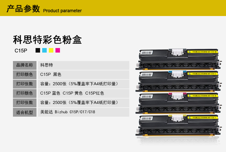 自營科思特 C15粉盒 適用柯尼卡美能達(dá)打印機(jī)BizhubC15 C17 C18 黃色 專業(yè)版